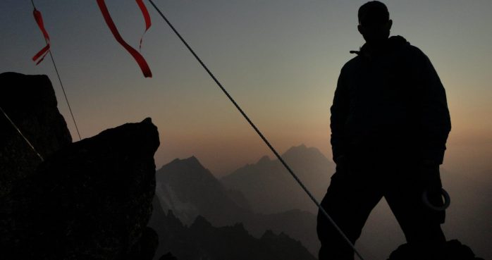 Aaron Seaman catching a beautiful sunset on top of Canon Mountain in the Cascades, Washington State, ca. 2012.